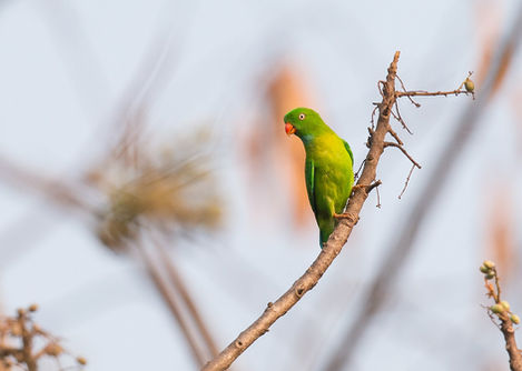 Leaving Siem Riep we head to the floodplain grasslands of Tonle Sap to search for the critically endangered Bengal Florican. Populations of these birds have halved in the past few years and our visit will be supporting conservation efforts by using local people to help us locate these incredibly rare birds. We will scan the grasslands and with luck, may even see their unique flight display. Other birds here may include Small Buttonquail, Bluethroat, Oriental Skylark, Australasian Bushlark, Richard’s & Oriental Pipits, Blue-tailed Bee-eater, and the scarce Manchurian Reed-Warbler. After this we will continue to the remote Khmer village of Tmatboey situated in the centre of the Northern Plains of Cambodia. On the way we will look for pint-sized Collared Falconet and White-rumped Falcon. Other possibilities may include Rufous-winged Buzzard, Changeable Hawk-Eagle, Large Hawk-Cuckoo, Crested Treeswift, and the neglectus race of Chestnut-bellied Nuthatch. After arriving at the rustic lodge, we will take an afternoon excursion to a site for Pale-capped Pigeon. We may also see Chinese Francolin, Brown Fish-Owl, Green Imperial-Pigeon, Large & Common Woodshrikes, Vinous-breasted Myna, and the enormous Great Slaty Woodpecker. Before dusk we will position ourselves to view the White-shouldered Ibis coming in to their roost site. After dinner we may look for Collared & Oriental Scops-Owls closeby. We’ll overnight in the simple Tmatboey Eco-lodge.